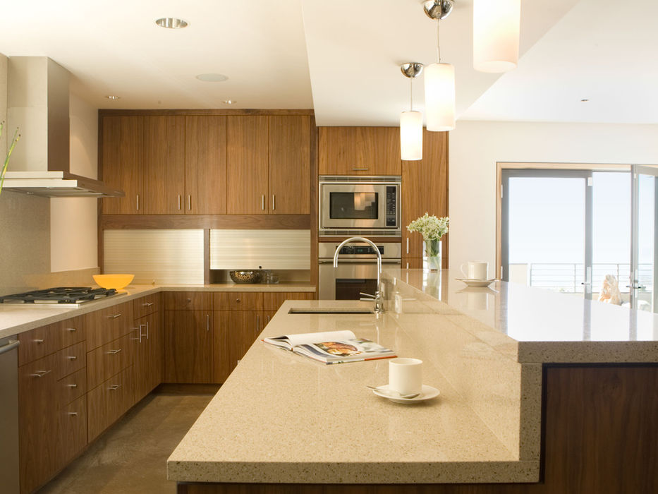 New systems were designed including a thin-film solar laminate photo-voltaic electrical system, on-demand recirculating hot water system and radiant heated floors. Finer details included showers without thresholds with water flowing to flush strip drains, new aluminum windows, interior red cedar walls with built-in walnut cabinets, stained Canadian tight-knot white cedar and stucco exterior walls. A 600 square foot new deck terrace provides a level outdoor space with gorgeous views of the Bay.