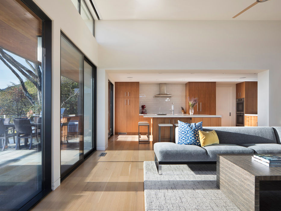 The first day we met our clients at this home in Kentfield, Marin County, we were surprised at how nondescript the front yard of the house was, versus the all glass back yard with great views of the San Francisco Bay. Wanting to balance the house and open it up, we were asked to raise the ceilings and provide more glass and views to the entry front yard. The house was already large and expansive, so more square footage was not necessary, it just needed an architectural facelift.